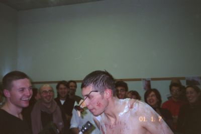 Il festeggiato ne è uscito devastato come la tradizione impone.