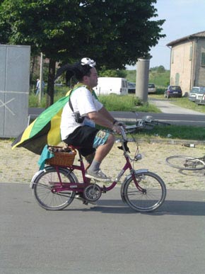 trovare lungo il percorso gente finita nei fossi con le biciclette