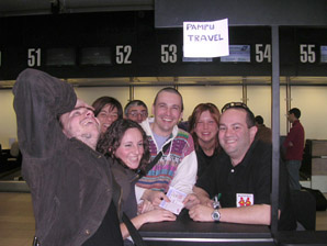 E’ una bella mattina di sole quando mantovani e bresciani si ritrovano presso il casello di MN Nord con il Pantera affetto dalla solita sindrome del ritardo cronico. Dopo pochi minuti ci raggiunge la prima telefonata di Jacopo che detterà il tema per la drammatica giornata. Jacopo: “senti Pantera, la patente è valida come documento per l’espatrio? No perché… sono senza carta d’identità e con il passaporto scaduto”. Prime madonne del paffuto tour operator di Pampucom… Giunti al Marconi di Bologna la realtà è proprio quella attesa, Jacopo verrà imbarcato su un cargo bestiame, come meriterebbe, solo quando sarà in possesso di documenti validi. La hostess sudamericana, mitica Olivia C., (che poi si rivelerà essere la nostra salvezza) si dimostra gentile ma ferma.