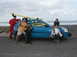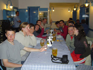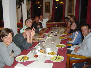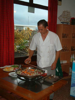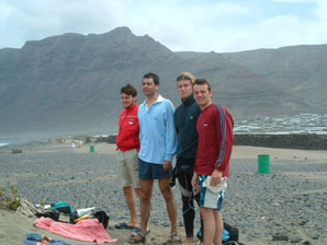 Nonostante le notti brave che hanno accompagnato l'ala mondana della compagnia, il giorno dopo freschi come delle rose c'è chi ritorna a cavalcare faticosamente le onde e chi se ne va a Nord a spaparanzarsi al sole... La sera ci vede riuniti intorno a un tavolo di un ristorante di Famara per la classica cena a base di Paella organizzata dalla Surf School presenziata anche da quel cazzone di Markus (dietro al quale la schiera di fanciulle lasciava chilometri di bava!!) |