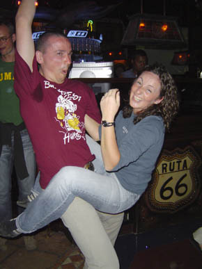 Ovviamente non poteva mancare una serata vip per i locali di Puerto del Carmen dove il Golden ha praticamente monopolizzato il locale mettendo nell'ombra persino i ballerini!!! Un cerchio di persone di tutte le nazionalità si è aperto intorno a lui mentre sfoderava il meglio del suo repertorio. Renato, stupefatto dall'esibizione del Golden, esordiva dicendo: "potrei giustificarlo se dovesse bere qualche alcolico ma va avanti a sola acqua!!!". La serata in disco è stata anche un occasione per scoprire che nella figura del Leprotto vi era quella di un provetto ballerino stile Golden che nelle sue numerose esibizioni ci ha regalato delle vere emozioni!!
