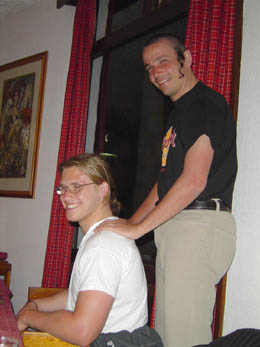 Al ritorno della comitiva il fattaccio: l’inglese incontra i favori di una nostra gentil pulzella su intercessione del Golden che durante la cena mette al servizio della neo-coppietta la sua trentennale esperienza di rimorchio sentendosi un po nei panni del Dott. Stranamore. Senza riferire altri particolari scabrosi raccogliamo solo una massima della Manu il mattino dopo: “…maaah niente, non ho notato lenzuola sporche, però mi son fatta il segno della croce entrando in camera…” Straordinèèèriooo. Altro tormentone della settimana: Ma il Golden si è zompato o no la Cristina nella loro cameretta sempre chiusa misteriosamente a chiave?