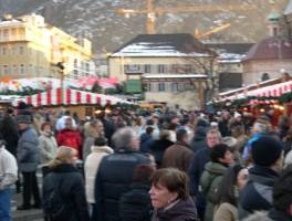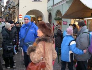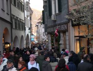 | Questa signora ha scambiato Bolzano per un paese siberiano retrogrado, sicura di trovarla inondata di neve e piena di bivacchi al posto di case. Ebbene, sono orgogliosa di annunciare che a Bolzano, abbiamo anche la TELEVISIONE!!!!! (che sia un bene non ne sono proprio sicura, almeno fino a quando Valeria Marini continuerà a vivere) | Altra foto di gruppo di Piazza Walter….. tante formiche che camminano…. In cerca di cosa???? Del regalo perfetto!!!!!!!! |