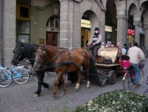 | Mmmmmmmiiiiiiiiiiiiiiiiiii andare in giro sulla carrozzella…….. che bello……. Da notare la faccia da pirla con il capello grigio…. Si fanno 500 km. di macchina per poi farsi altri kilometri in carrozza pagandola come una Gondola……. |