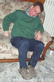 Un momento di disattenzione ed il Pietro si è fatto soffiare la pollastrella. Qui tenta un sorriso di circostanza fingendo di non aver accusato il colpo.