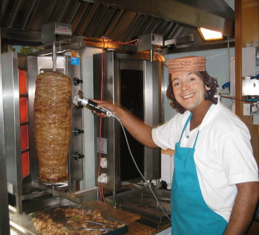 | DESCRIZIONE | Sempre a 3,5 euro un kebab abbondante e speziato con la variante del pane, che non è il classico arabo bianco ma una pagnotta più scura e tozza cha purtroppo fa molto mulino bianco. Mezzo punto in meno perchè quando chiedi qualcosa il pakistano te lo ripete con la vocina e sembra che ti prenda per il culo. Scarnifica il blocco arrostito col coltello anzichè con quella specie di tosapecore che usano gli altri; non so che differenza faccia ma porcaputtana qualcosa dovrò pur scrivere. |