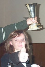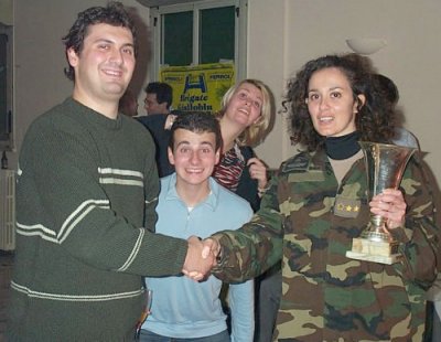 ll presidente del sito www.pampuboia.com (conosciuto anche come DJ Vitello) consegna alla Manu Beschi in rappresentanza delle Bresciane la coppa per la vittoria del sondaggio sul Personaggio Emergente. |